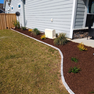 One of the standout features of this project is the crisp stone edging that frames each landscape bed. Edging doesn’t just improve curb appeal — it also helps keep mulch contained, prevents erosion, and makes routine maintenance easier for homeowners in coastal North Carolina.